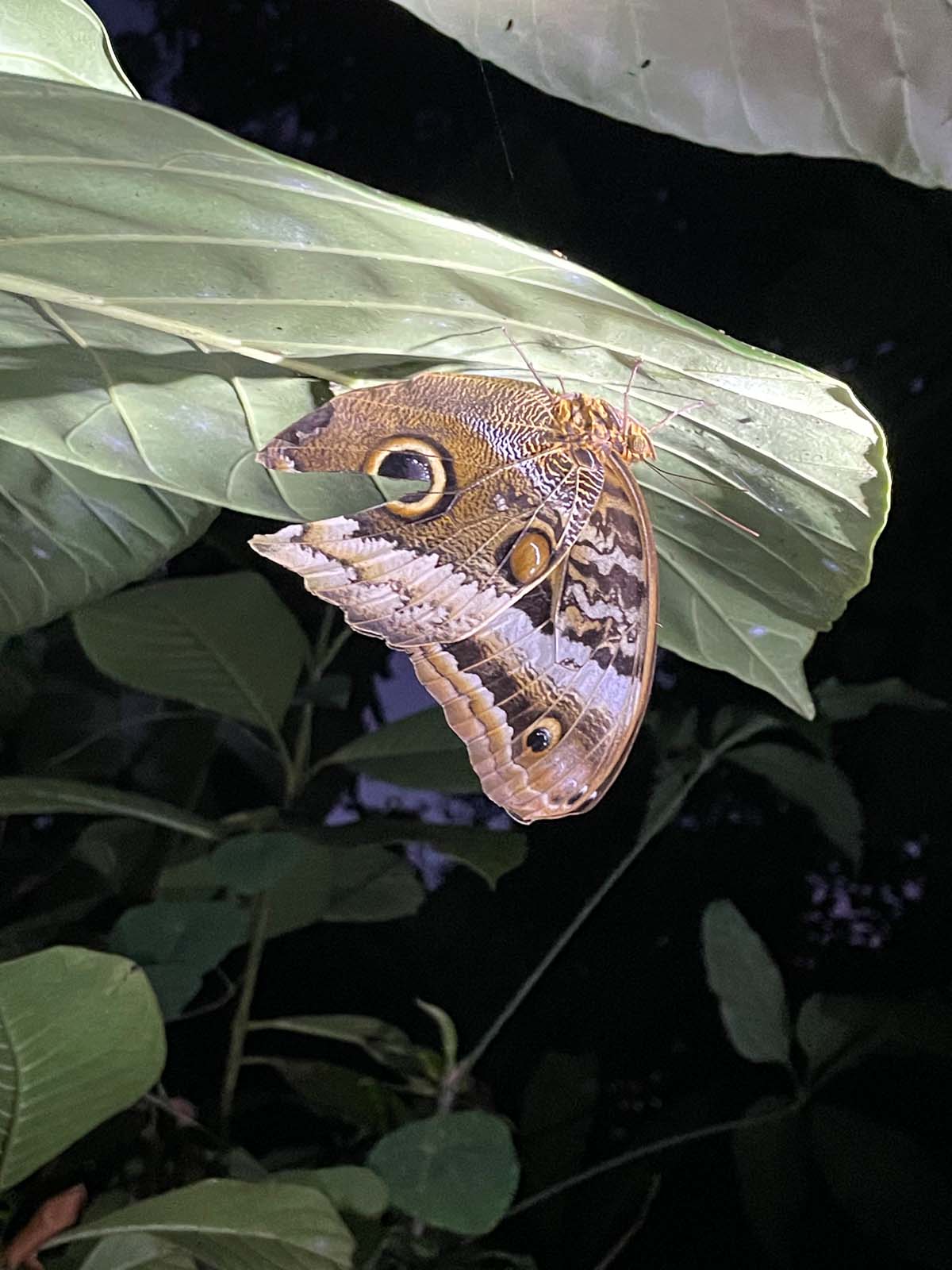The rain forest at night is something altogether different and spectacular. It is incredible how dark it gets so quickly, and the volume of the forest sounds. Along the hike, you might see: